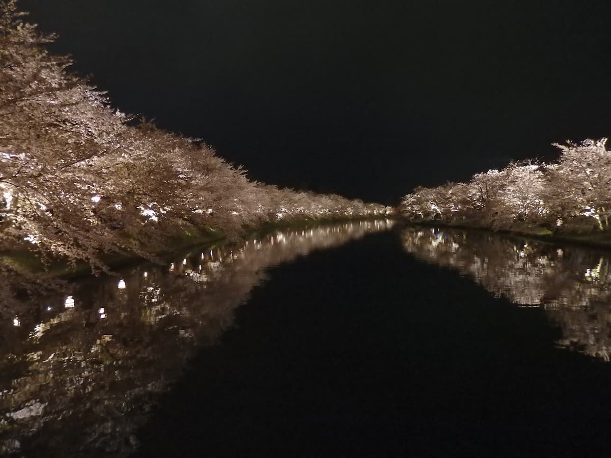 昼間は城郭と桜が織りなす華やかな景観が目を引きますが、夜の弘前公園には、どこか静謐で奥行きのある美しさがあります。昼と夜、それぞれに異なる表情を見せる桜を見比べることも、この地を訪れる楽しみのひとつと言えるでしょう。
